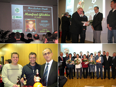 überreichten den Geehrten neben der DFB-Uhr weitere Erinnerungsgeschenke!